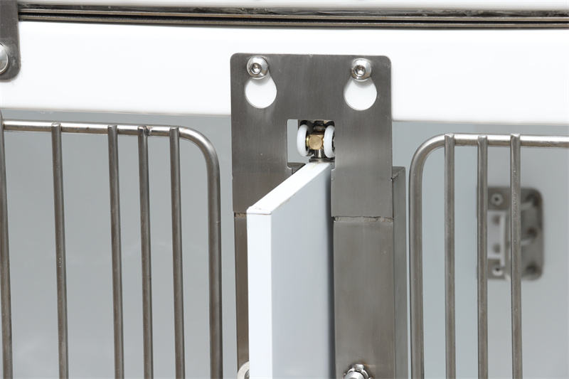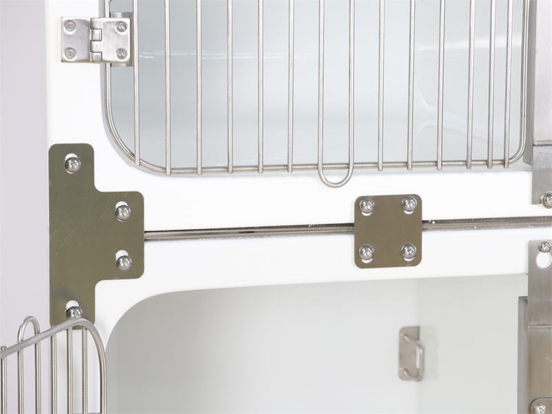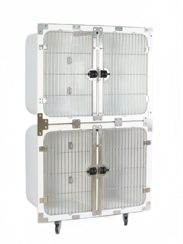 Az erős zsanérokkal rögzített kivehető bejárati ajtót átlátszó akril ajtóval lehet helyettesíteni, és a ketrecet oxigénterápiás állomássá lehet alakítani.